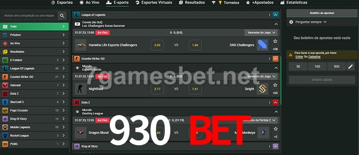 O 930 bet oferece uma grande seleção de opções de apostas em e-sports com probabilidades competitivas